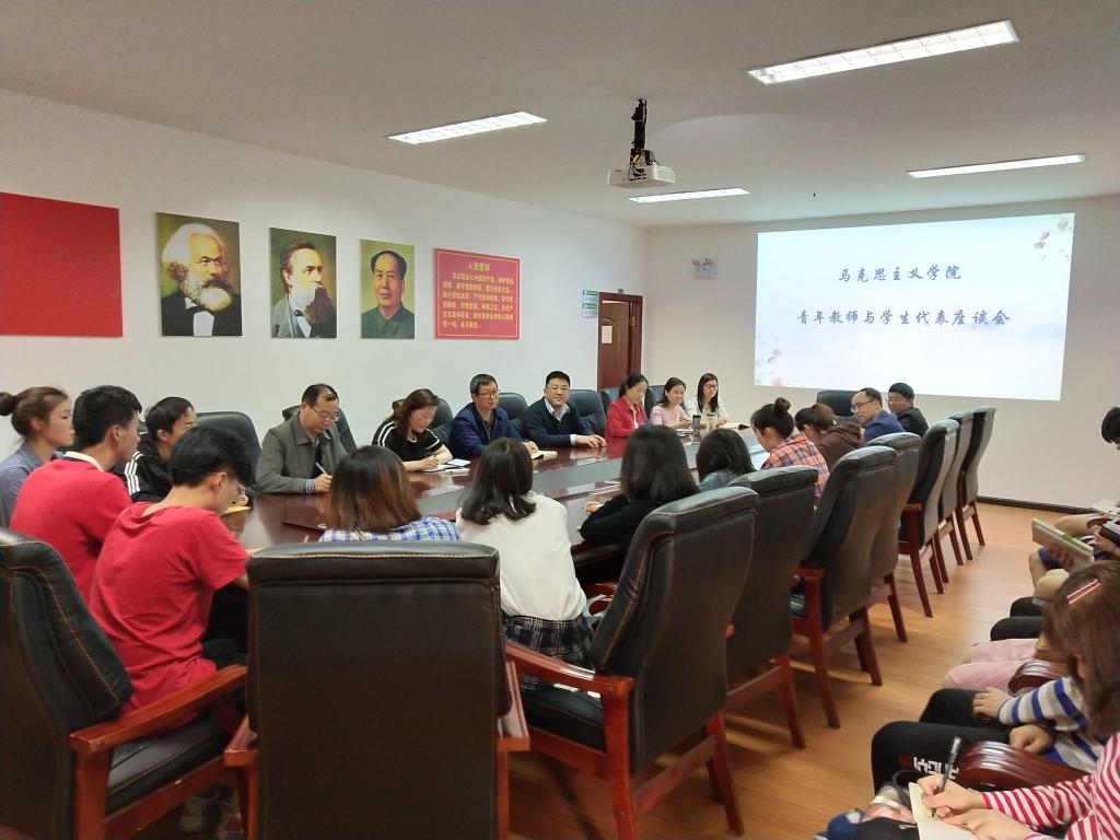 (威廉希尔足球官网通讯员 王遂敏)为了更好的贯彻落实习近平总书记在学校思想政治理论课座谈会上的讲话精神,切实按照“八个统一”的要求上好每一堂思政课,结合学校期中教学检查工作要求,5月9日下午,威廉希尔足球官网召开新进青年员工与员工代表座谈会。威廉希尔足球官网院长王奎、教务处副处长任强、威廉希尔足球官网督导小组成员和新进青年员工、不同威廉希尔足球官网的员工代表共30余人参加了会议。