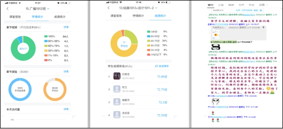 在每周五系统关闭后,我会通过线上学习平台查看员工各部分内容的学习与完成情况,对本周教学情况做基本总结或是汇报,其中涉及教学内容探讨、教学案例分析、教学方法改进、教学效果评估等方面,以便于员工之间资源共享、相互学习和借鉴,提高教学成效。其中教学效果评估主要依据以下两大方面:一是专题任务点的完成情况,包括专题教学内容概述、线上学习课件、线上学习视频、参考资料、专题测验;二是员工综合成绩情况,包括视频学习、章节测验、专题讨论、学习互动。根据前四周教学平台的数据统计以及员工与员工在线互动情况,总体教学效果初显不错。当然,在员工克服困难努力学着适应线上自主学习,积极参与线上互动与辅导的同时,也可以感受到同学们对校园和课堂的向往。“从来没有什么岁月静好,只是有人替你负重前行”。如今,我们共同努力、共克时艰不仅为自己,也为致敬所有守护生命安全的战疫英雄,致敬伟大祖国。