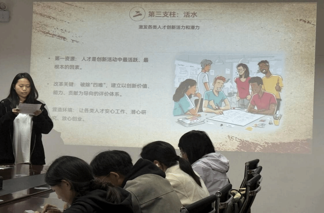 同学们汇报结束后,王丽老师点评并作题为《练就过硬本领 担当时代大任——在一体推进教育科技人才事业发展中建功立业》的学术讲座,勉励同学们以本次读书分享会为契机,继续保持积极的阅读态度,持续深入研读《习近平谈治国理政》第五卷,将科学理论转化为思想武器,在学习和生活中不断践行,努⼒成为新时代党的创新理论的坚定信仰者和忠实实践者。